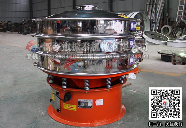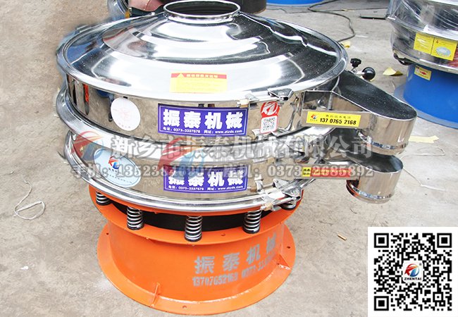 小型震動(dòng)篩又叫做旋振篩或者振動(dòng)篩,屬于一種精細(xì)篩分設(shè)備。常見的物料如面粉、食鹽等等。小型震動(dòng)篩是以YZUL立式振動(dòng)電機(jī)作為激振源,通過振動(dòng)電機(jī)上下兩端的偏心重錘將旋轉(zhuǎn)運(yùn)動(dòng)轉(zhuǎn)變?yōu)樗健⒋怪薄A斜的三次元運(yùn)動(dòng),并傳遞到旋振篩的篩面上;物料通過入料口進(jìn)入設(shè)備內(nèi),根據(jù)不同物料篩分要求,物料經(jīng)過1-5層采用不同目數(shù)的金屬編織篩網(wǎng)的篩分層,在這個(gè)過程中,位于各層的篩網(wǎng)下的清網(wǎng)裝置(彈跳球)通過頻率振動(dòng)不斷撞擊篩網(wǎng),使篩網(wǎng)上層物料能夠順暢的透網(wǎng)篩分,并有效解決了物料堵網(wǎng)問題出現(xiàn),不同目數(shù)的物料通過各層對(duì)應(yīng)目數(shù)的篩網(wǎng)后在各層的出料口排出,最終實(shí)現(xiàn)篩選除雜或過濾分級(jí)的目的。調(diào)節(jié)上、下兩端的相位角,可以改變物料在篩面上的運(yùn)動(dòng)軌跡。