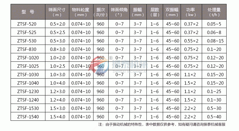 震動篩的種類非常多,常見的有旋振篩和直線震動篩等。今天振泰機械就把旋振篩和直線震動篩的參數列出來,供大家參考!